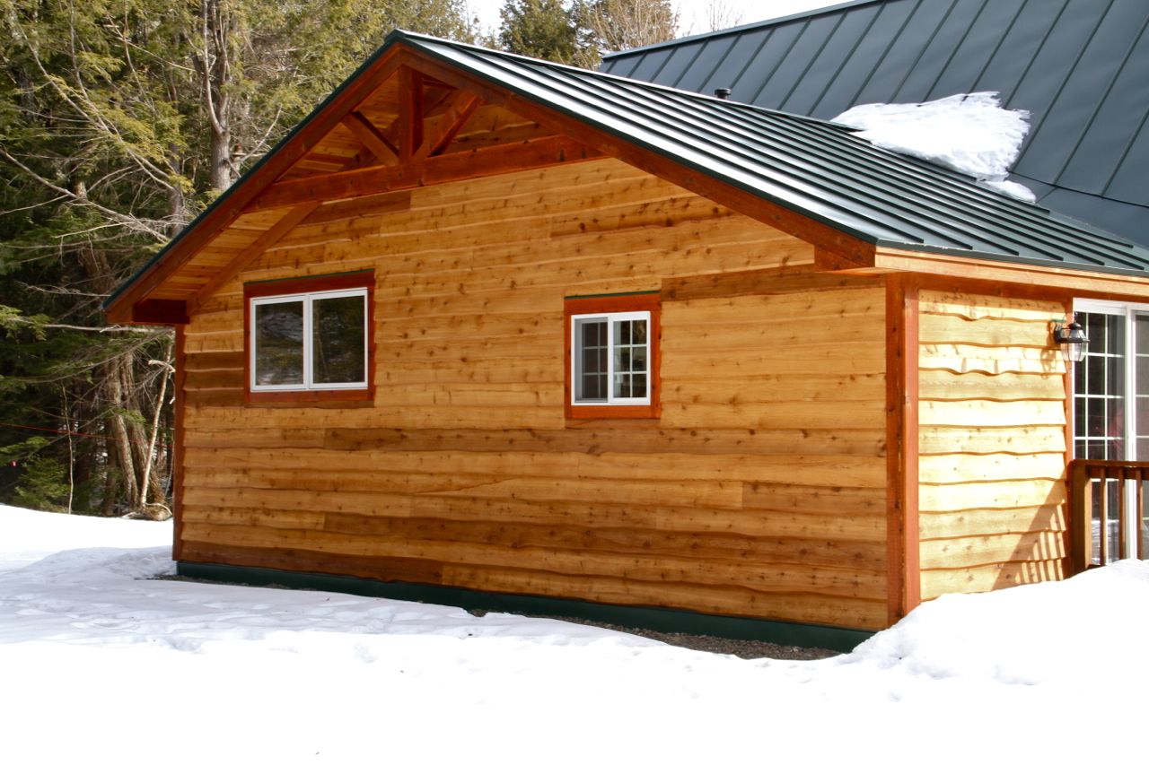 Live-edge siding for that rustic, Vermont ski cabin feel.