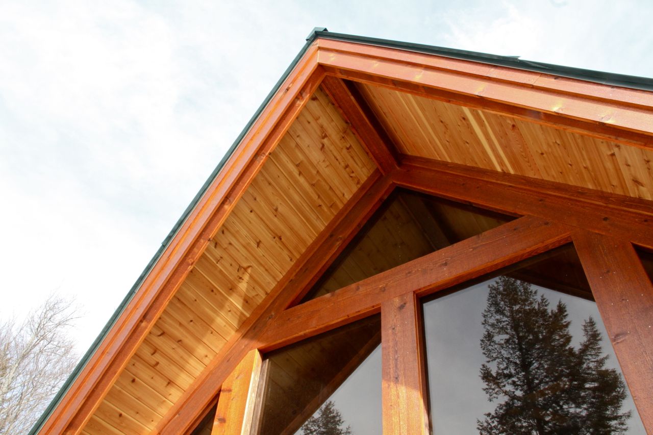 Beautiful cedar beneath the overhang frames out a lovely view.
