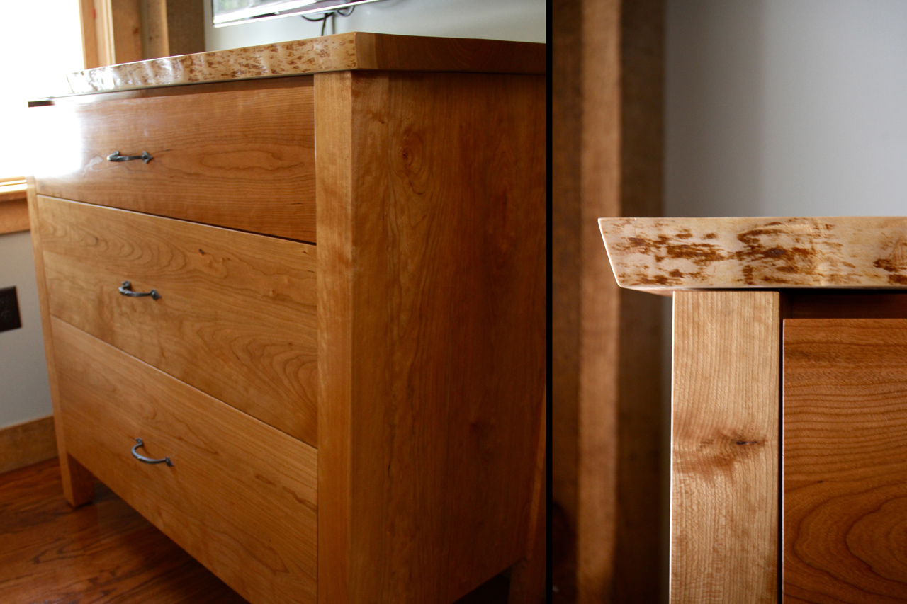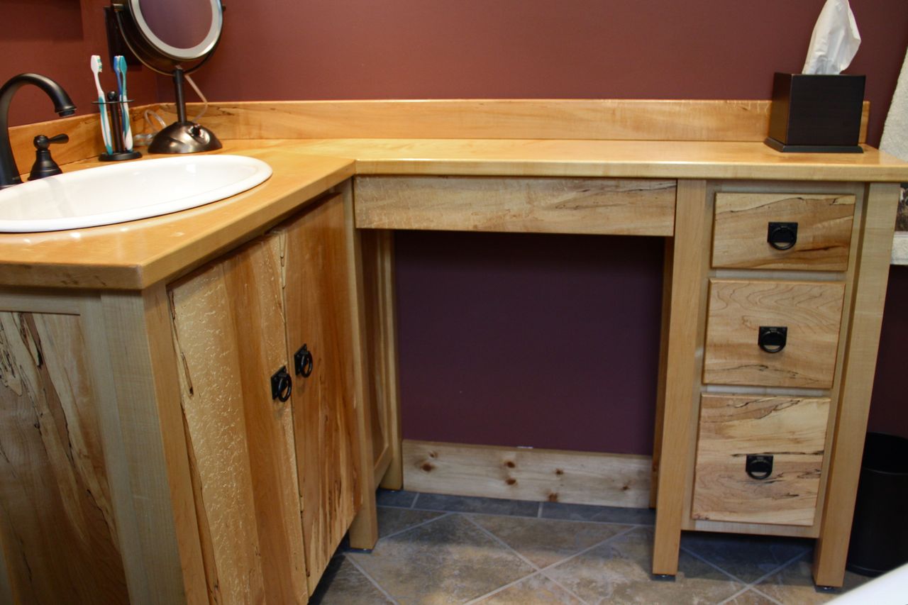 A custom sink vanity, in spalted maple, for the master bathroom.