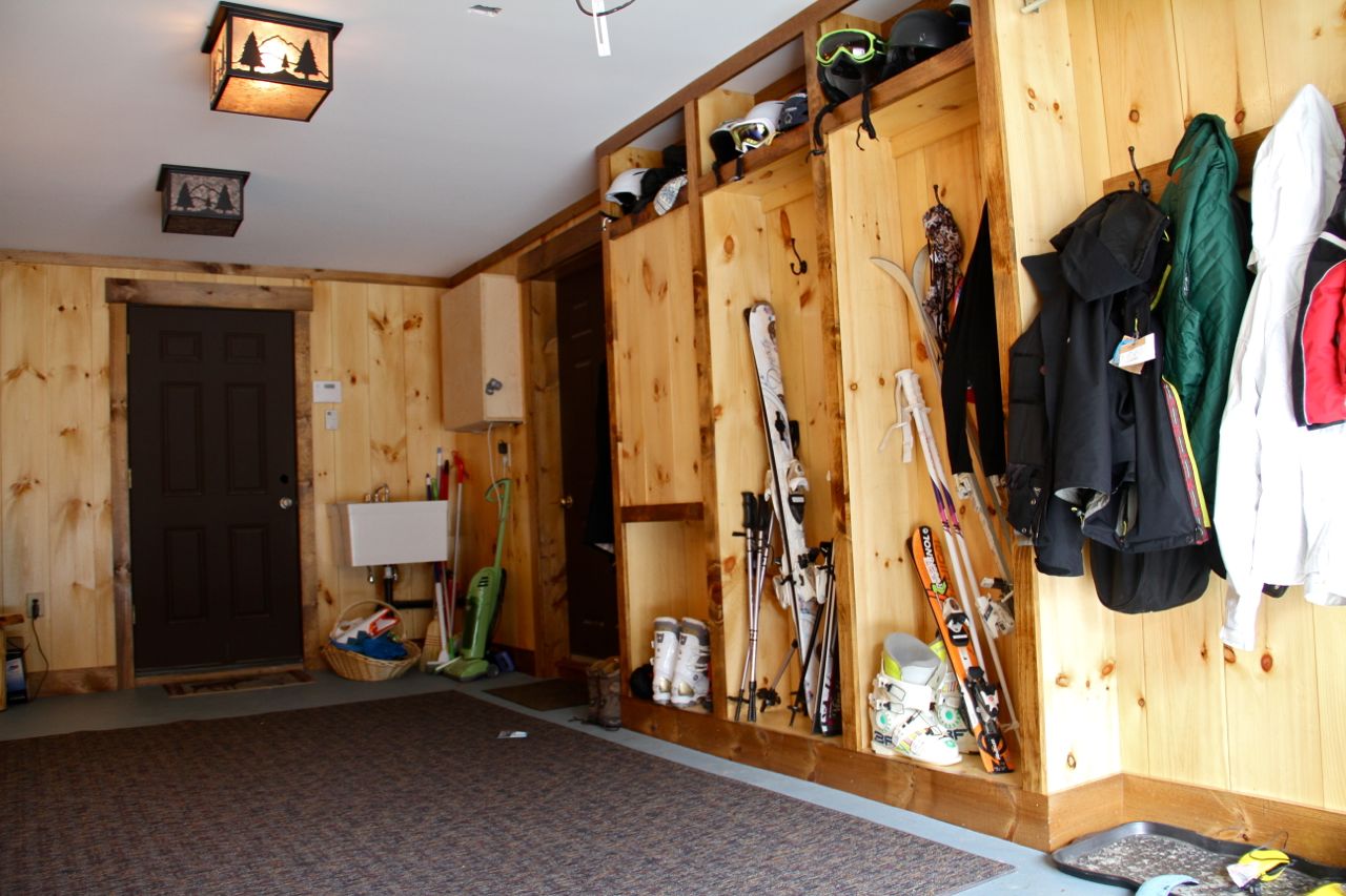 The garage was turned into an equipment room with custom cabinetry and a heated concrete floor.