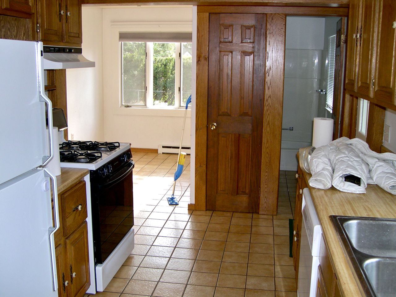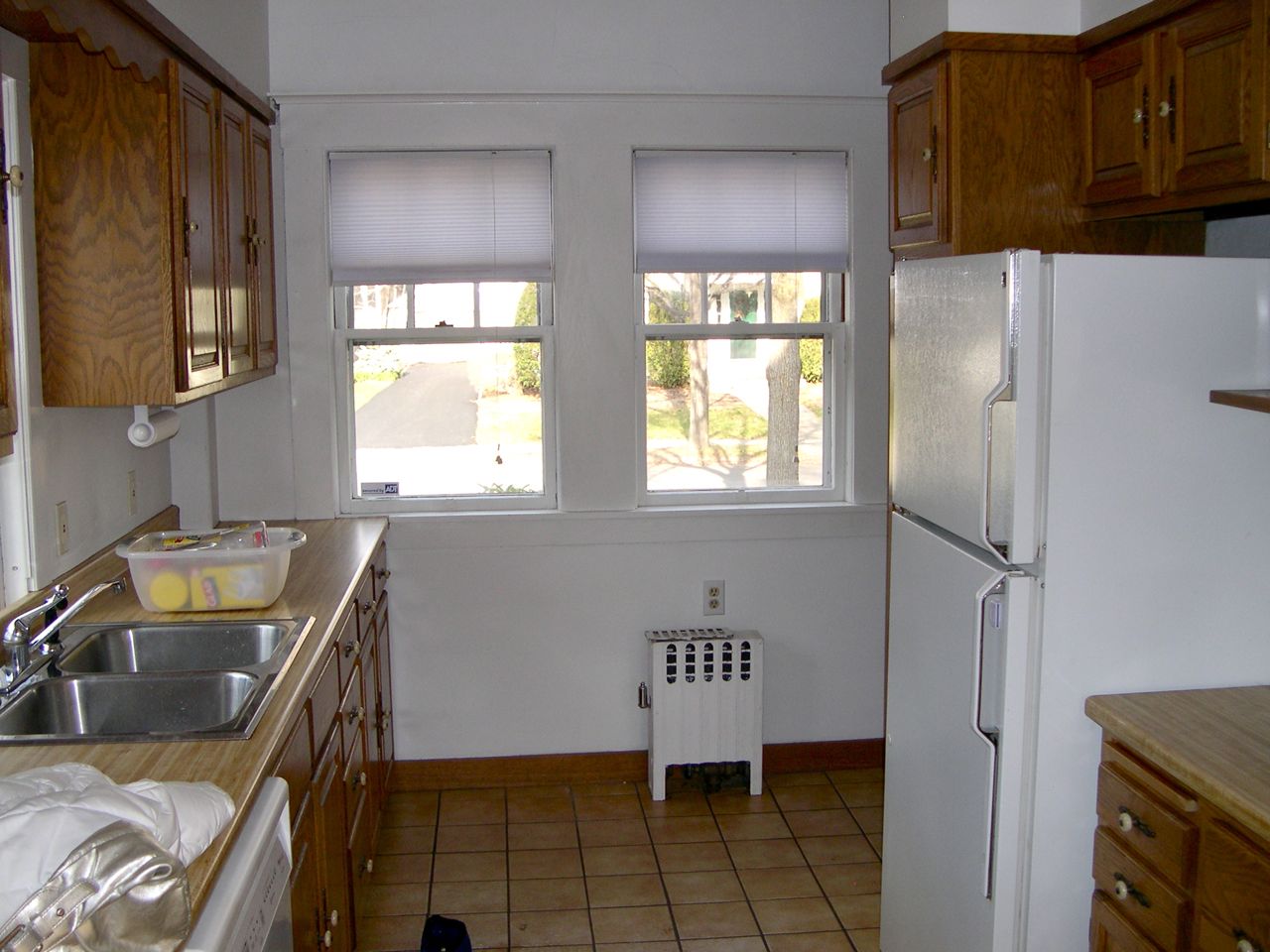 BEFORE, kitchen facing south. There was a full bathroom within the kitchen, and an awkward eat-in area just adjacent the formal dining room.