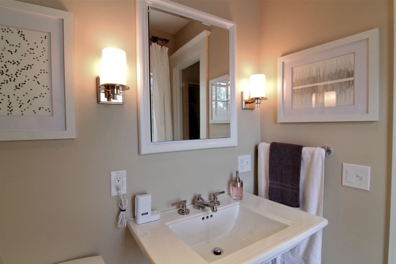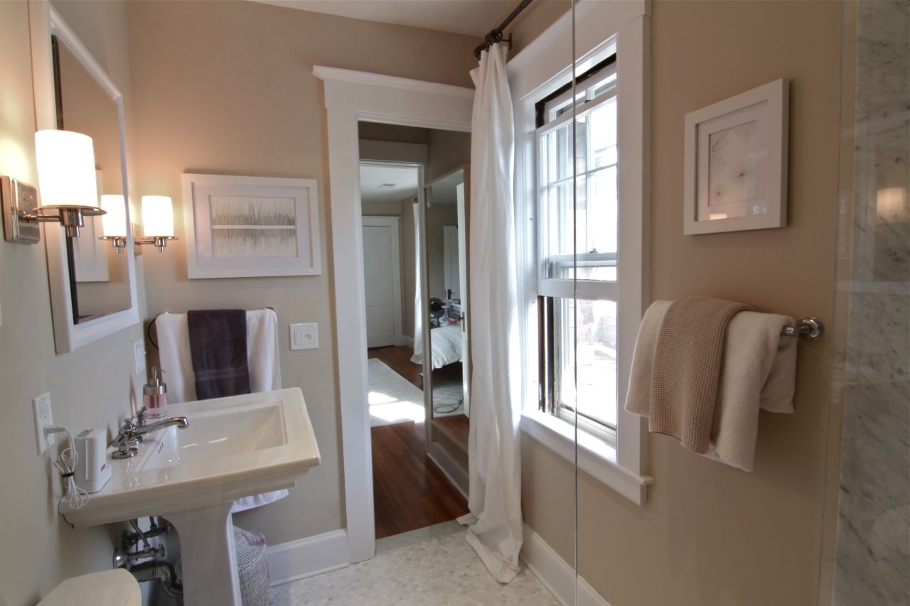 The powder room boasts in-floor radiant heating, marble flooring, new window with custom-milled trim package, and new plumbing and lighting fixtures.